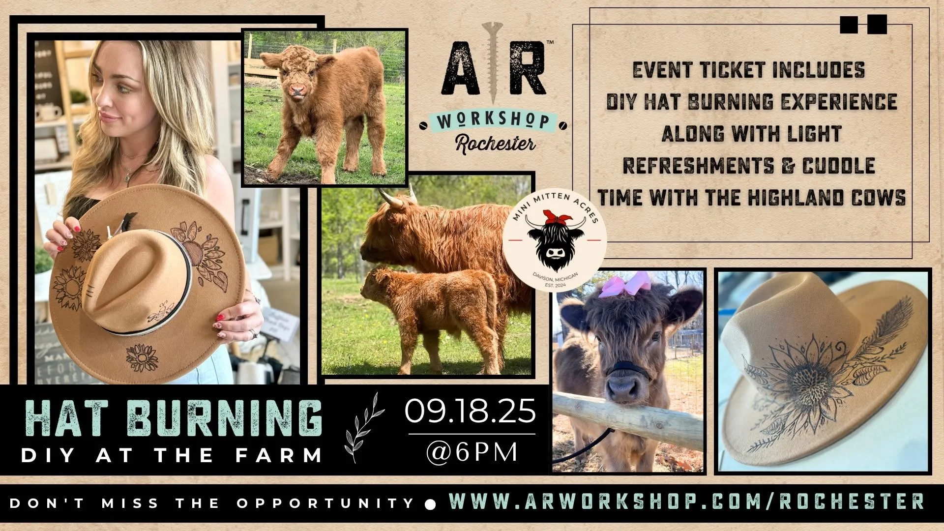 Join us at Mini Mitten Acres to ignite your style with a DIY Hat Burning Workshop!